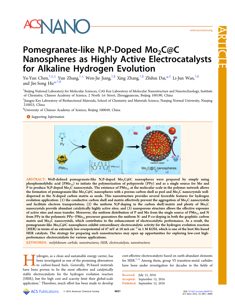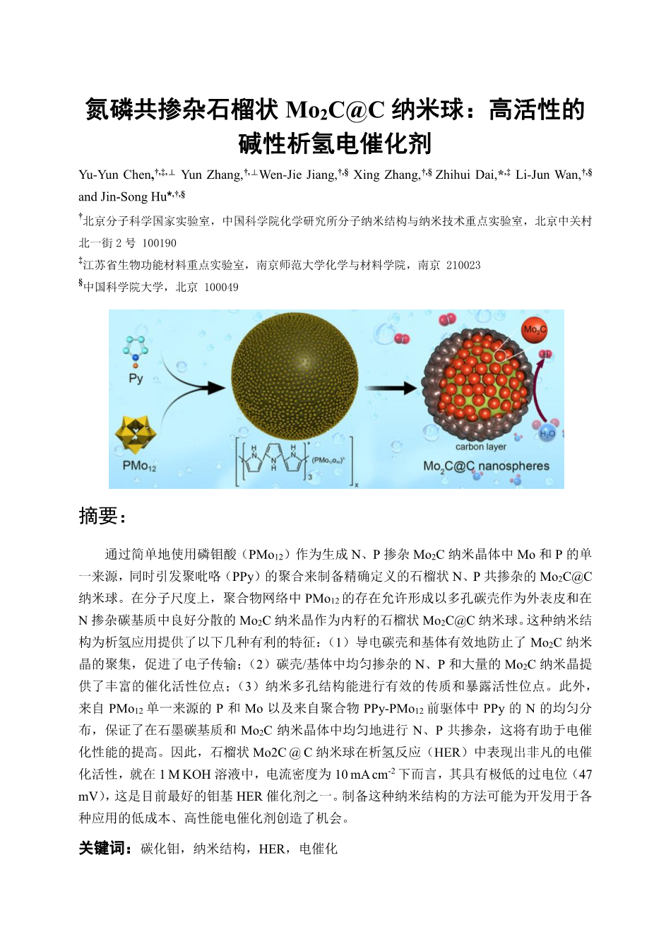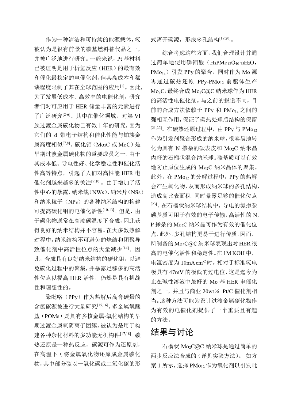 多孔碳负载钼基纳米材料作为高性能析氢电催化剂外文翻译资料
