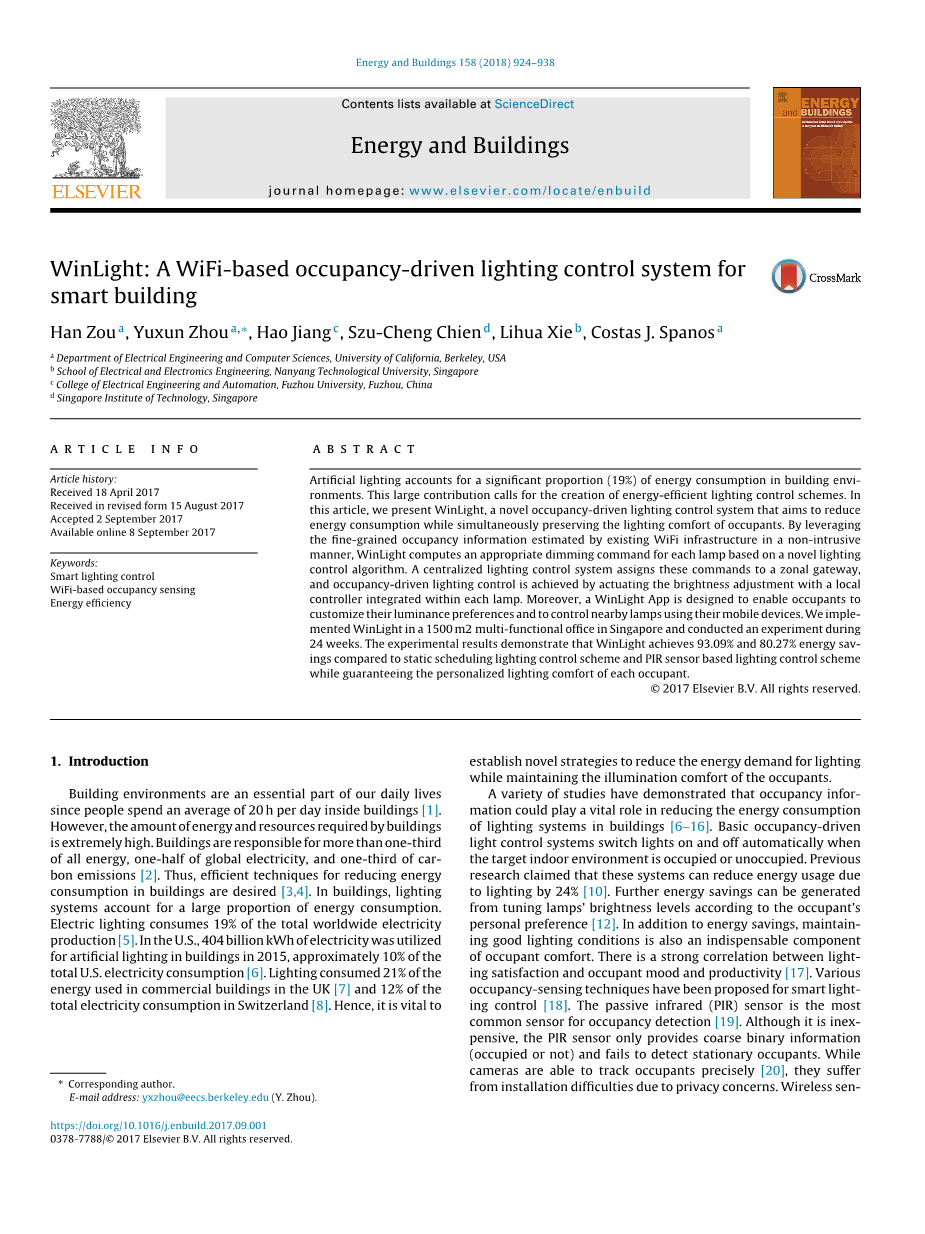 Han Zoua, Yuxun Zhoua, Hao Jiangc, Szu-Cheng Chiend, Lihua Xieb, Costas J.Spanosa