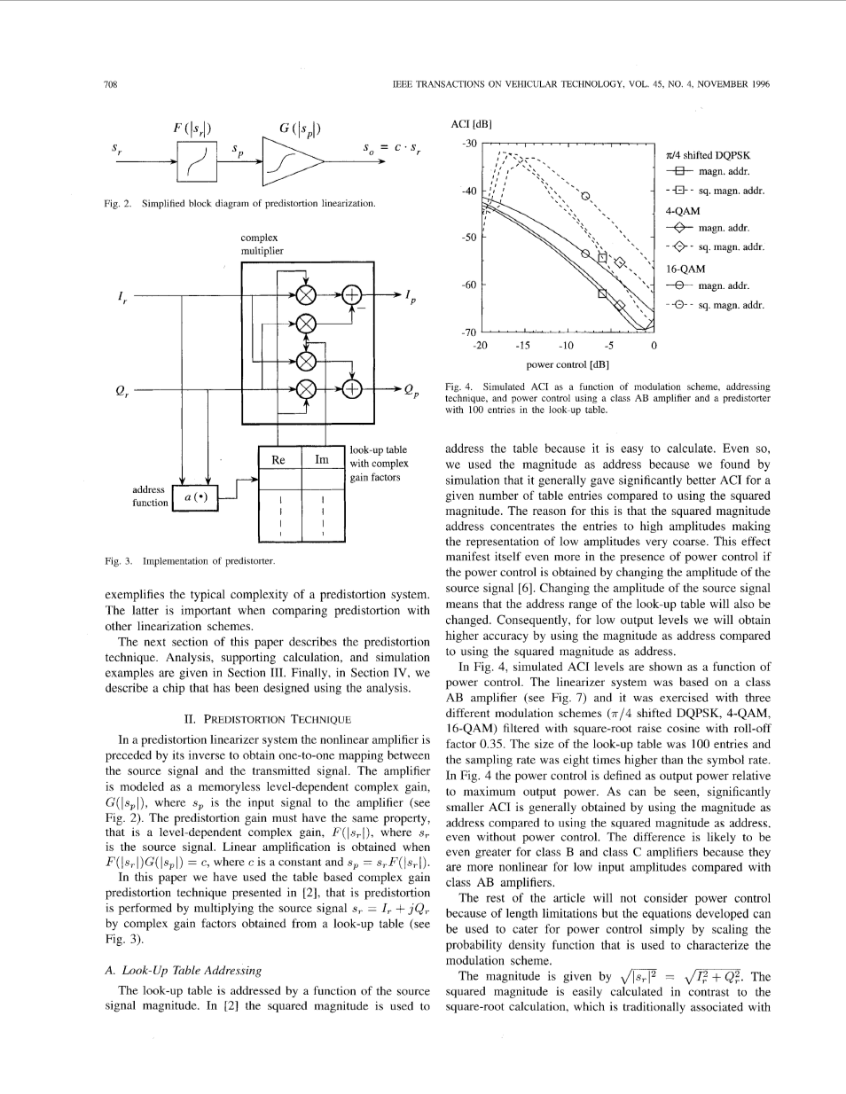 在图4中, 模拟的 ACI 级别显示为功率控制功能。linearizer 系统是基于 AB 类放大器 (见图 7), 它采用了三种不同的调制方案 (7 r/4 移位 DQPSK, 4-qam, 16 qam), 用平方根提高余弦值进行滤波, 并带有滚断因子0.35。查找表的大小为100项, 采样率比符号速率高八倍。在 图 4 中, 电源控制被定义为相对于最大输出功率的输出功率。可以看出, 显著较小的 ACI 通常是通过使用震级作为