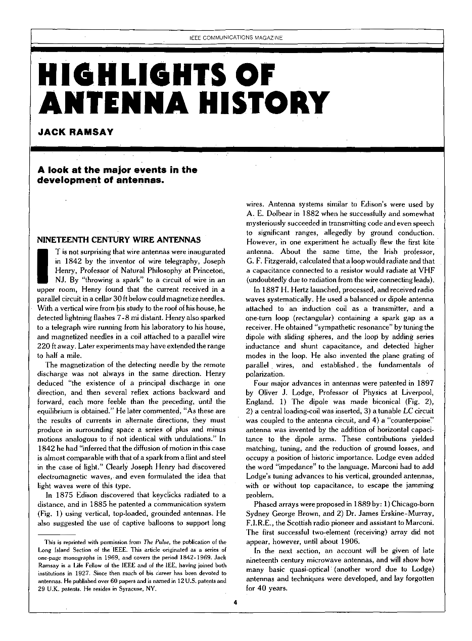 由于对1888-1900年先驱者所取得的进展的认识不足,在此向他们致敬,提供的天线设计数据依然存在。