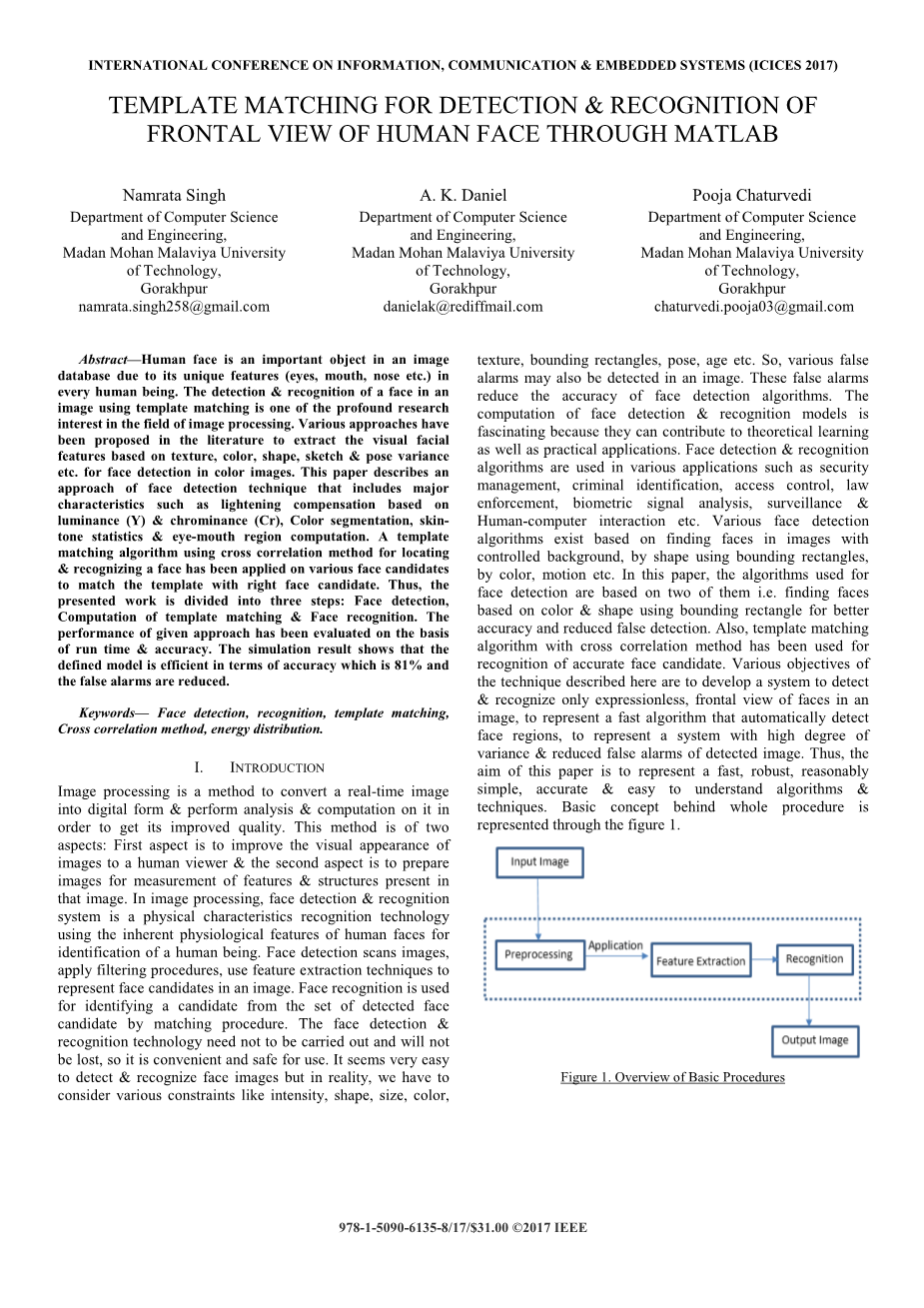 TEMPLATE MATCHING FOR DETECTION amp; RECOGNITION OF FRONTAL VIEW OF HUMAN FACE THROUGH MATLAB
