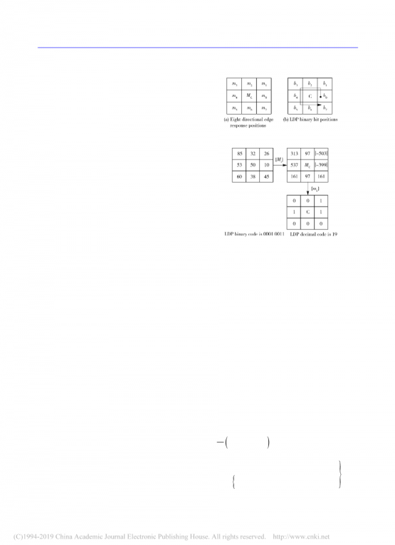 其中是边缘响应值,是中心像素的灰度值,m是3times;3区域的平均值。图2.3示出了ELDP代码。使用ELDP算子编码图像的一个像素的过程如图2.4所示。