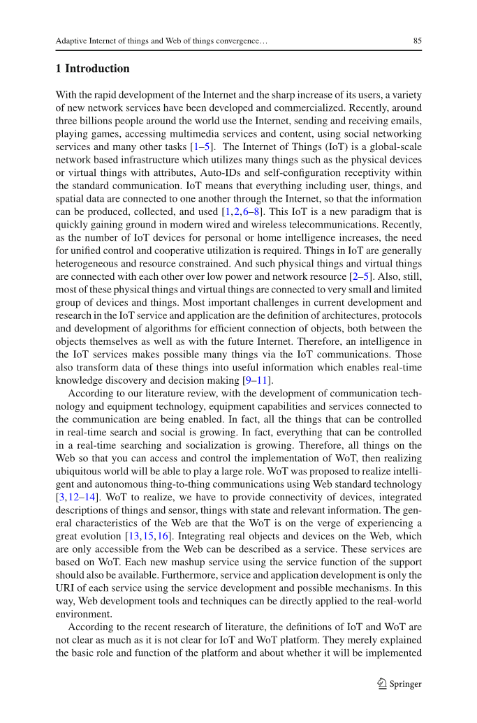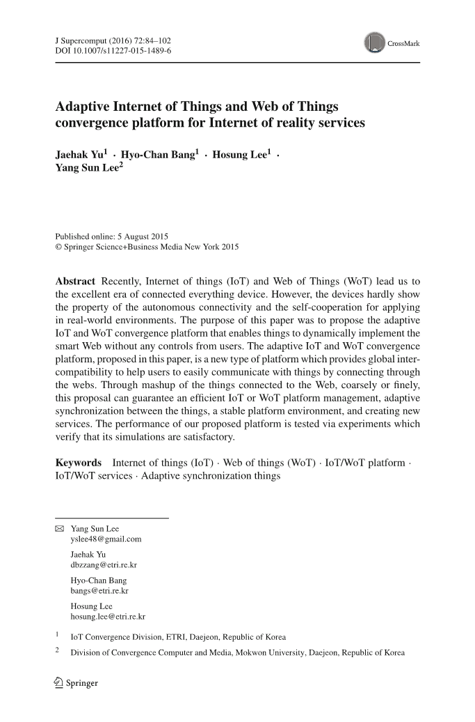 本文的目的是提出自适应IoT和WoT融合平台,这对于通过动态混搭实现智能网而言是必不可少的,无需用户干预。本文提出的自适应IoT和WoT融合平台是一种新型的平台,它提供了相互兼容性,可以帮助用户通过网络连接轻松进行通信,并且帮助用户和事物轻松互相交流。粗略或精密地将与Web相关的事物混合起来,该提议可以保证有效的IoT或WoT平台管理,事物之间的适应性同步,稳定的平台环境以及创建新服务。我们提出的平台的性能通过实验进行测试,验证其仿真效果令人满意