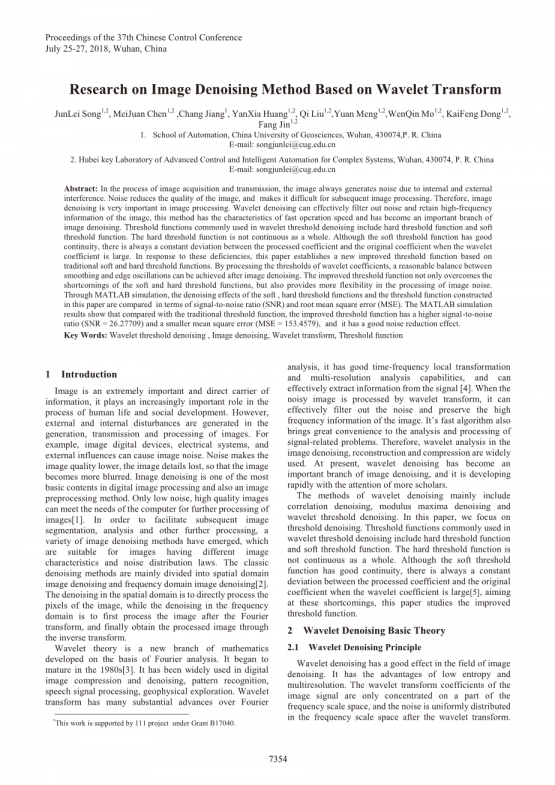目前,全球阈值主要包括:DJ阈值,贝叶斯收缩阈值和地图收缩阈值,最大/最小阈值和理想阈值。本地阈值与全局阈值不同。本地阈值主要根据灵活决策“保持信号”平衡的原则,通过检查某一点或某一部分的特征,确定系数是“主要噪声”还是“主要信号”,决策原则有时不对必须从系数的绝对值来考虑,但从其他方面,如概率和模糊隶属度来考虑。Vidakovic等人。使用主要的不同特征和跨尺度分布的主要噪声系数。基于贝叶斯框架,Vidakovic等。根据假设检验给出一个阈值公式,并用它来处理硬小波系数。Ching结合区间估计理论和假设检验方法给出了另一种局部阈值收缩方法。到目前为止,研究阈值通常基于实际应用需要,通过确定适当的标准和通过优化可能的阈值来选择。由于图像信噪比较大,本文为模拟选择更通用的全局阈值。