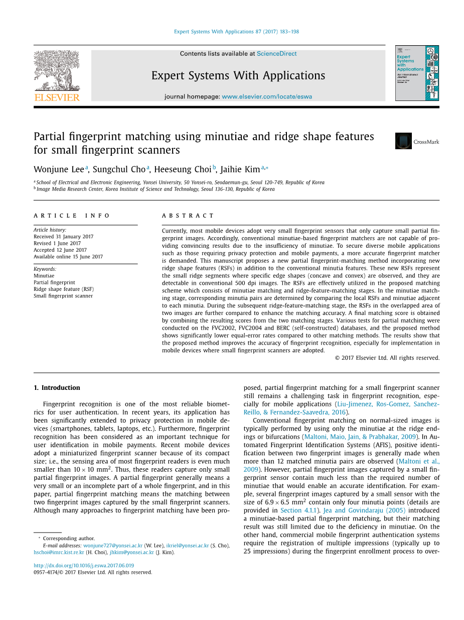 本文提出了一种适用于小指纹扫描的新的部分指纹匹配方案。 该方案基于传统细节特征与代表具有诸如凸和凹的特定边缘形状的脊段的新脊特征的组合。 先前研究了高分辨率(ge;1000dpi)指纹匹配的脊边缘的使用。但是,通过简化表征脊形轮廓形状,所提出的脊形状特征(RSF)在传统的500dpi指纹图像中是可检测的。所提出的RSF仅从观察到凸面和凹面边缘的特定脊段中提取。与其他利用整个脊形轮廓或整个图像(纹理)的方法相比,所提出的方法被认为更适合于确保指纹模板和节省存储空间。另外,RSF是从任何脊中提取的,不仅是与细节相关的脊。换句话说,在匹配过程中采用丰富的岭信息。
