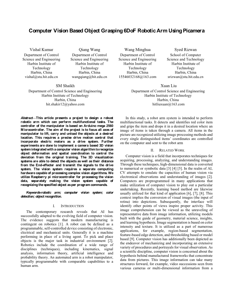 Vishal Kumar 中国哈尔滨工业大学控制科学与工程系 vishal@stu.hit.edu.cn