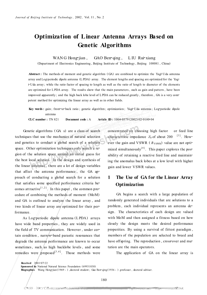 原文来源:WANG Hong-jian ,GAO Ben-qing ,LIU Rui-xiang,Optimization of Linear Antenna Arrays Based on Genetic Algorithms,Journal of Beijing Institute of Technology , 2002 , Vol. 11 , No . 2