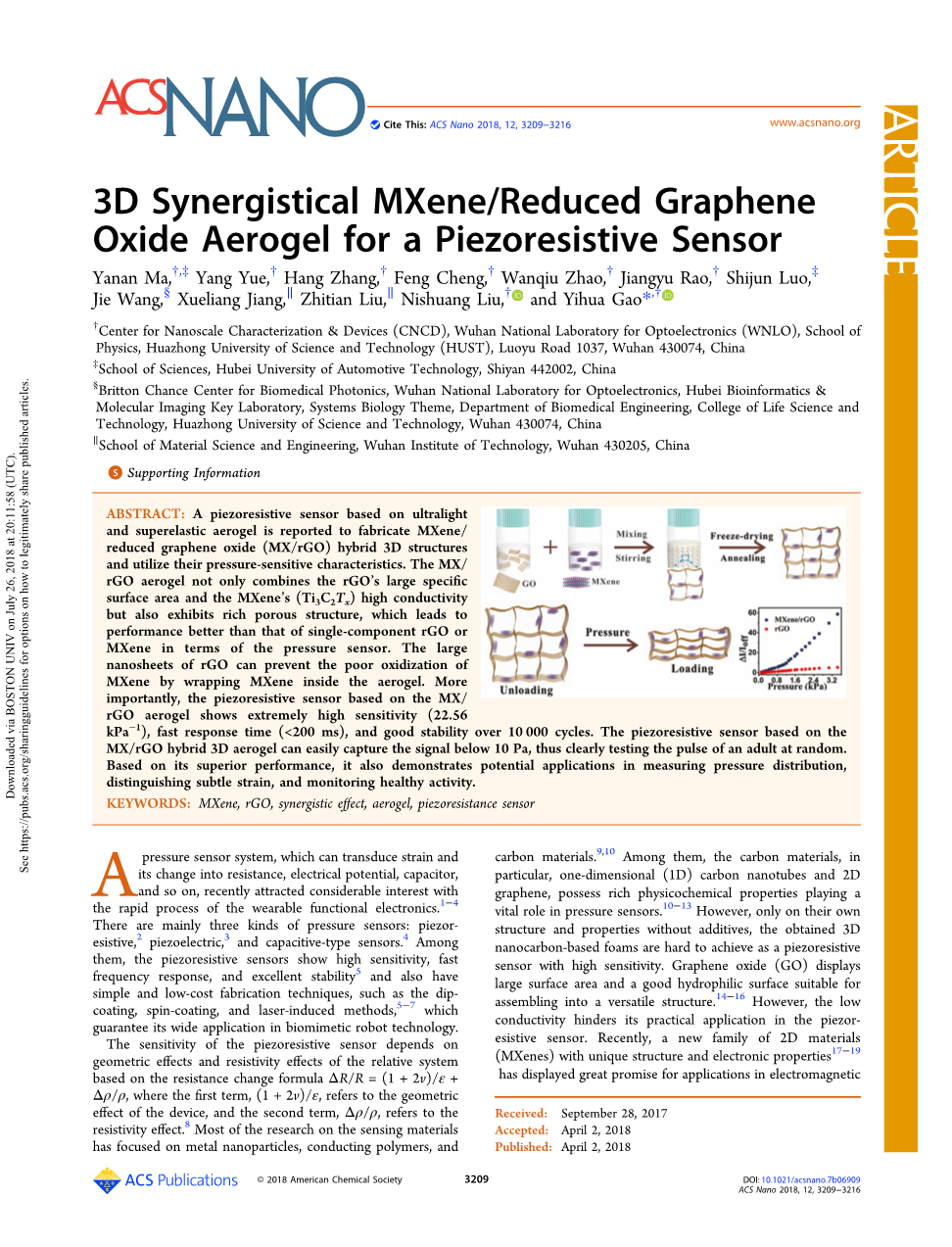 关键字:MXene,rGO,协同效应,气凝胶,压阻传感器
