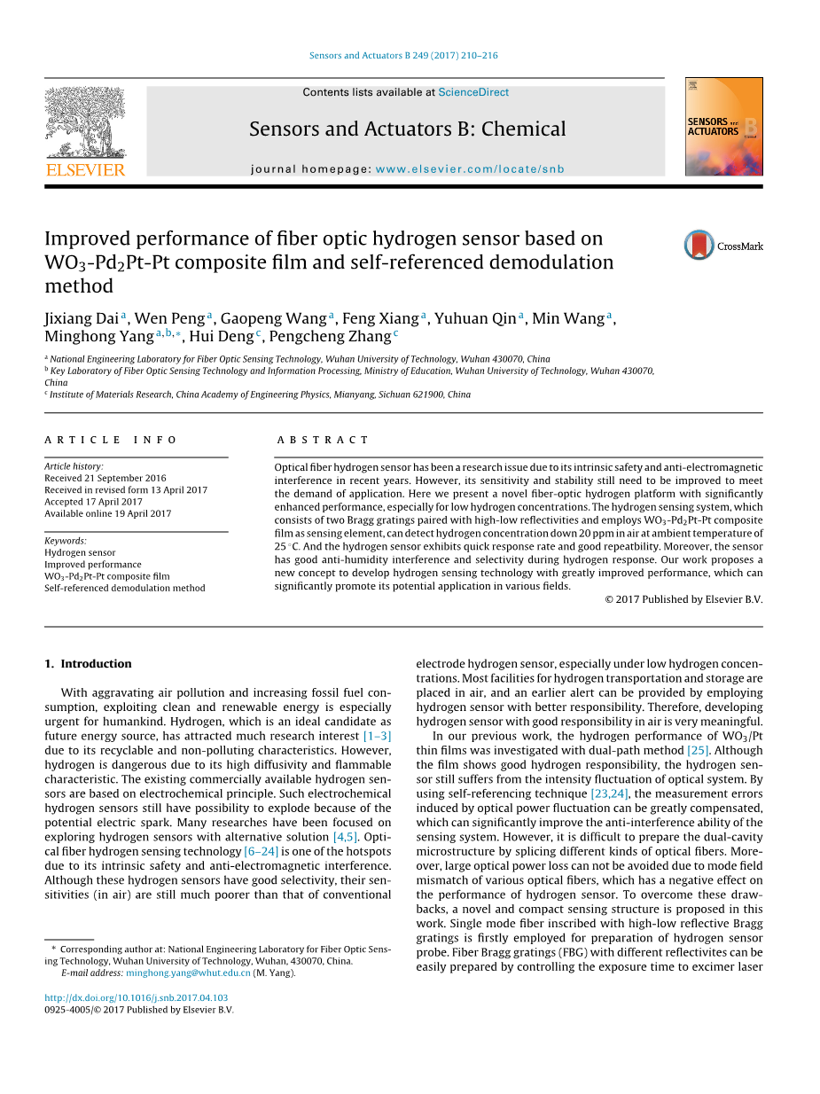 提升基于WO3-Pd2Pt-Pt复合薄膜和自参考解调法的光纤氢气传感器的性能