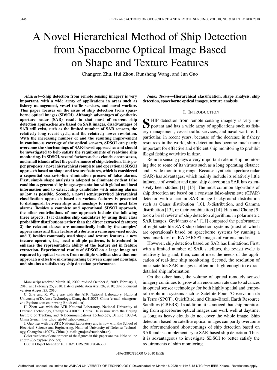 索引术语-分级分类:形状分析,船检,星载光学图像,纹理分析。