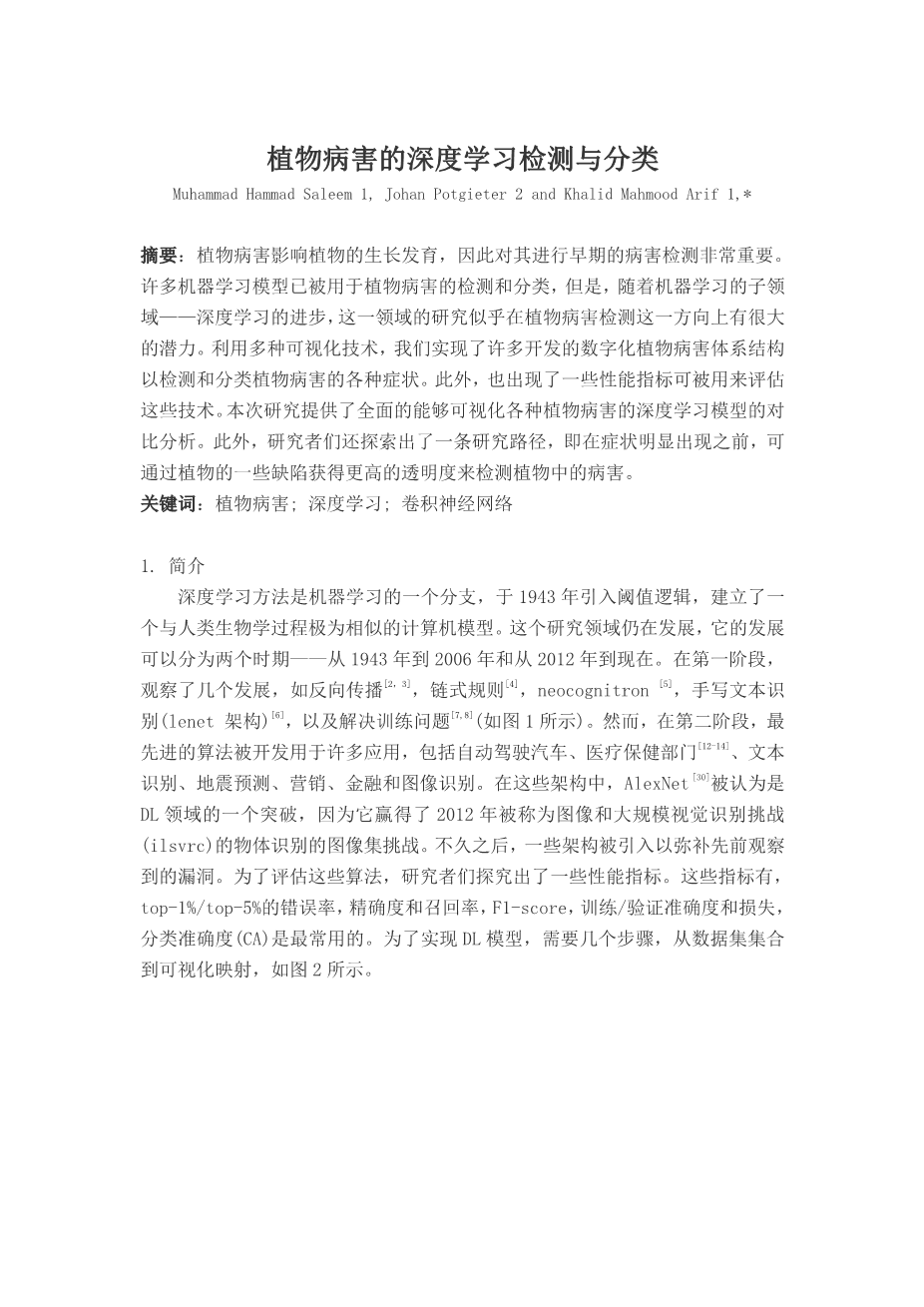植物病害的深度学习检测与分类外文翻译资料 2022-08-09 14:33:51 英语原文共 22 页,剩余内容已隐藏,支付完成后下载完整资料 英语译文共 26 页,剩余内容已隐藏,支付完成后下载完整资料 资料编号:[239201],资料为PDF文档或Word文档,PDF文档可免费转换为Word 原文和译文剩余内容已隐藏,您需要先支付 30元 才能查看原文和译文全部内容!立即支付 发小红书推广免费获取该资料资格。点击链接进入获取推广文案即可: Ai一键组稿 | 降AI率 | 降重复率 | 论文一键排版 PREVIOUS NEXT 您可能感兴趣的文章 带有Mini-LED背光的高动态范围液晶显示器外文翻译资料 基于局部直方图均衡的分层曝光无伪影高动态范围成像外文翻译资料 深入了解卷积外文翻译资料 基于局部和全局强度信息的主动轮廓模型用于医学图像分割外文翻译资料 采用叠加场效应管结构的毫米波功率放大器的分析与设计外文翻译资料 用于宽带包络跟踪的动态堆叠控制CMOS射频功率放大器外文翻译资料 文本无关说话人识别综述:从特征到超向量外文翻译资料 用SIMULINK启动外文翻译资料 AlGaN/GaN HEMT中电子迁移率与欧姆接触宽度关系的研究外文翻译资料 基于物联网的实时二氧化碳监测云技术外文翻译资料
