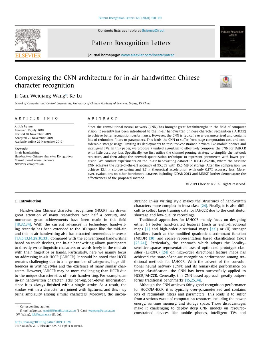 但是,大多数以前的作品仅从他们各自的方面压缩网络,而只有少数作品已将这些孤立的算法组合在一起,以实现完整的网络压缩。此外,这些方法最初是用于图像分类的,但是非常有限的研究已经研究了它们对诸如IAHCCR之类的其他挑战性问题的可行性或有效性。与图像分类相比,IAHCCR面临更严峻的挑战,包括大类(约3811个类),相似字符的存在,其单笔书写风格引起的歧义以及训练样本不足。在这种情况下,尚未探索或验证IAHCCR的网络压缩的有效性。此外,IAHCCR的先前工作大部分都集中在提高手写字符的识别性能上,而没有人尝试为此任务设计非常紧凑的模型。