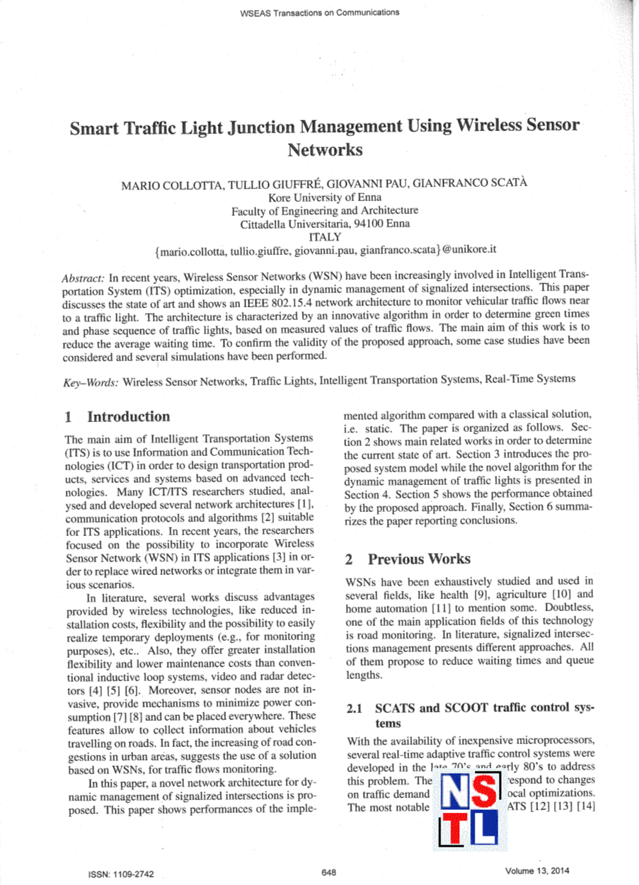 智能交通系统(ITS)的主要目标是使用信息和通信技术(ICT),以便基于先进技术设计交通运输产品,服务和系统。许多ICT / ITS研究人员研究,分析和开发了几种适合ITS应用的网络体系结构[1],通信协议和算法[2]。近年来,研究人员致力于将无线传感器网络(WSN)并入ITS应用中的可能性[3],以取代有线网络或将其集成到各种场景中。