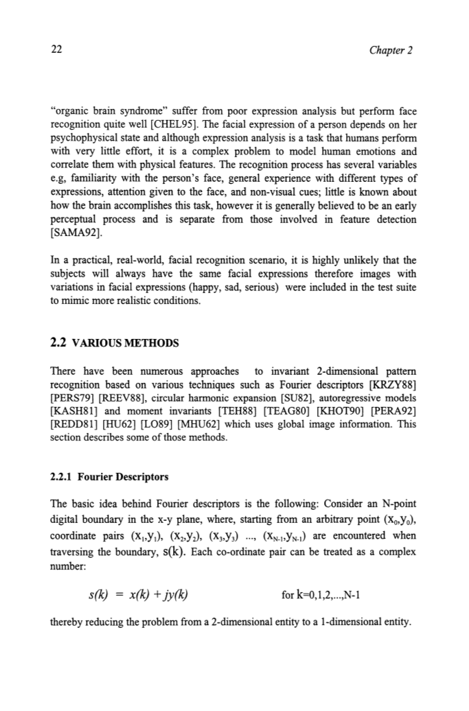现在存在很多种基于不同技术的不变二维模式的人脸识别算法,例如基于傅里叶描述子的算法、基于圆谐展开的算法、自回归模型、采用全局图像信息的不变矩算法。在这一部分,介绍了一些方法。