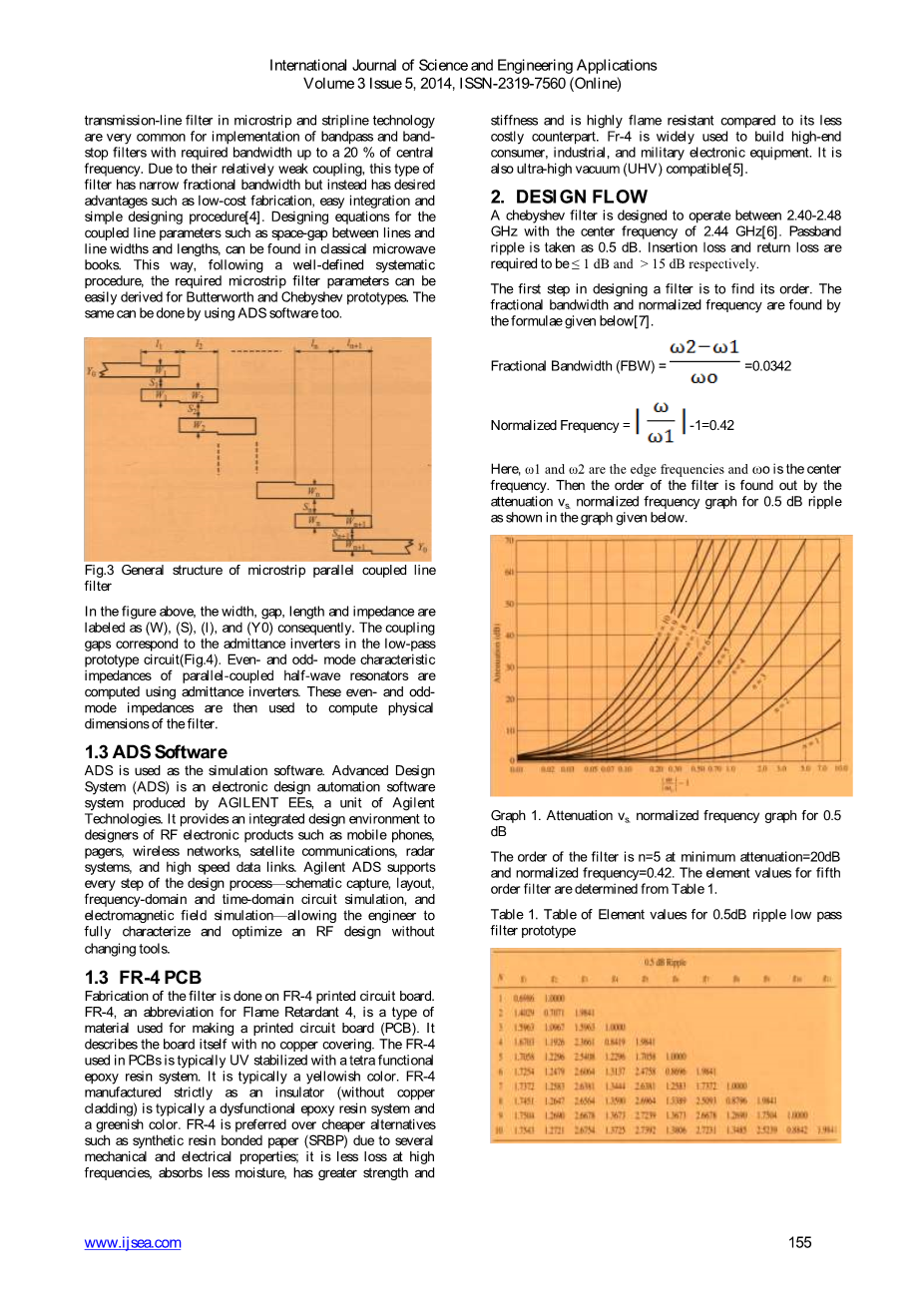 其中FBW是带通滤波器的分数带宽,是J-反相器的特性导纳,是终端线的特性导纳。 为了实现J-反相器,通过使用以下给出的关系来确定耦合线的偶模特性阻抗和奇模特性阻抗。