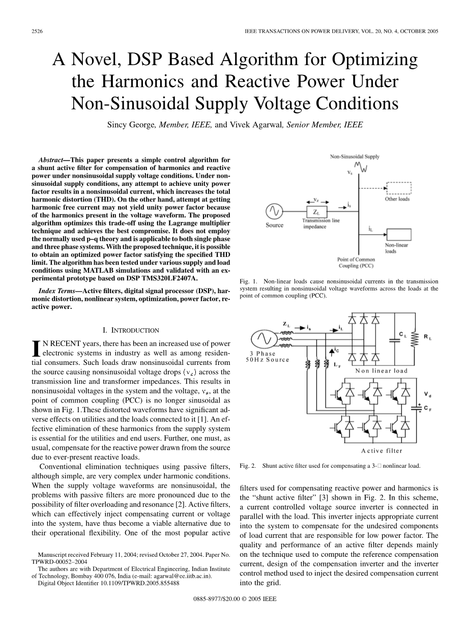 关键词:有源滤波器,数字信号处理器(DSP),谐波失真,非线性系统,优化,功率因数,无功功率