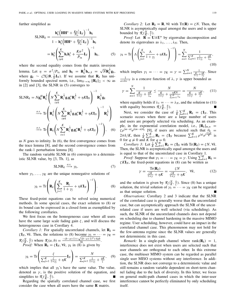 推论2:让,forall;k与Tr(R)=zeta;nN。然后SLNR渐近等于在用户加上由R上有界的和值。