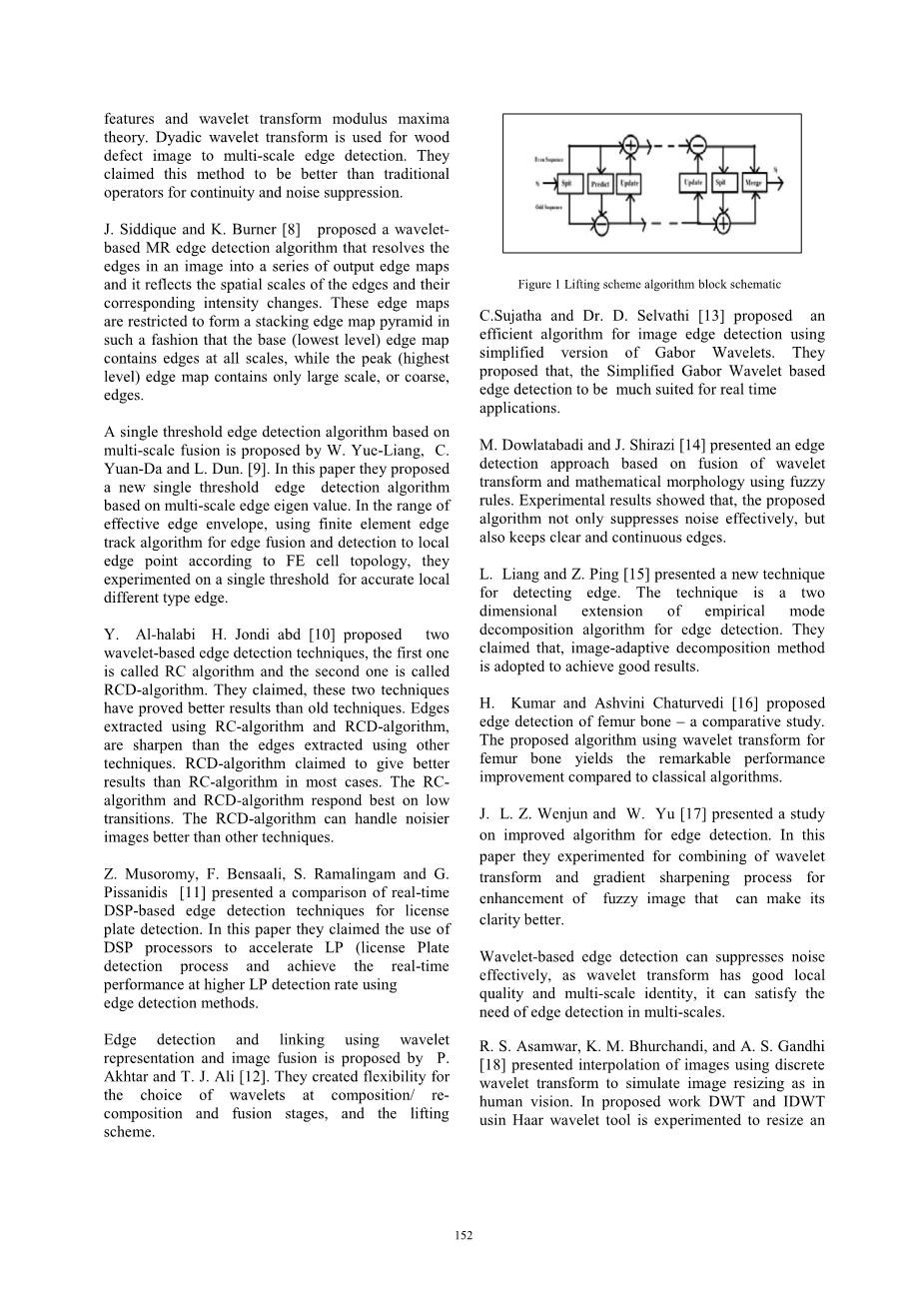 P. Akhtar和T. J. Ali [12]提出了使用小波表示和图像融合的边缘检测和链接。 他们为组合/重组和融合阶段的小波选择以及提升方案创造了灵活性。