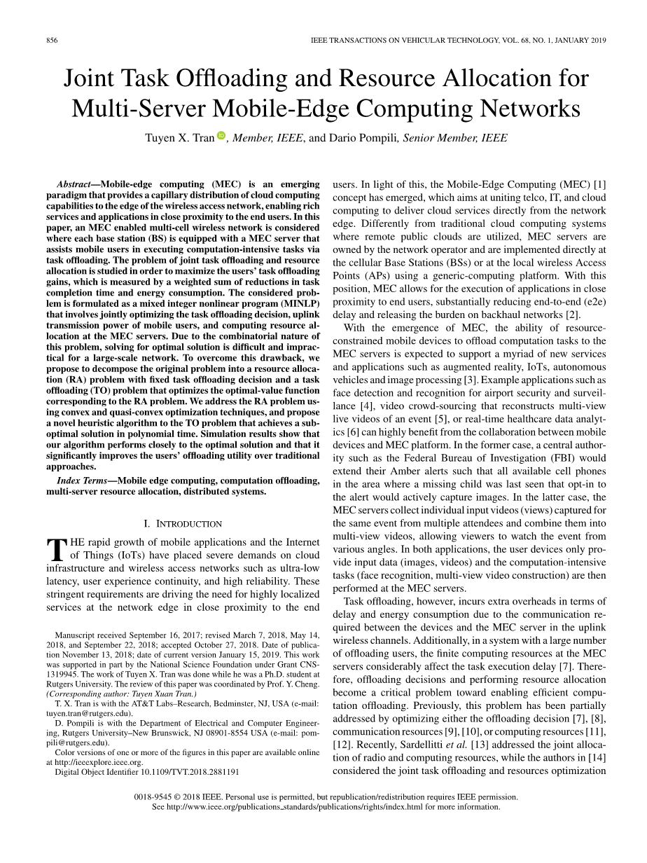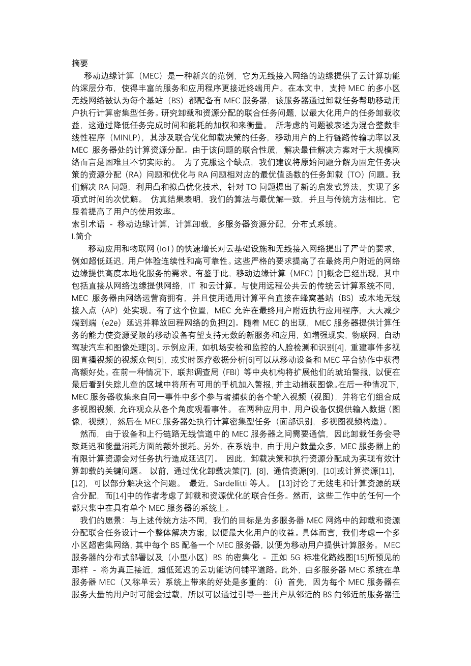 移动边缘计算中延迟与计算力分析外文翻译资料 2021-11-06 19:29:27 英语原文共 13 页 英语原文共 18 页 原文和译文剩余内容已隐藏,您需要先支付 30元 才能查看原文和译文全部内容!立即支付 发小红书推广免费获取该资料资格。点击链接进入获取推广文案即可: Ai一键组稿 | 降AI率 | 降重复率 | 论文一键排版 PREVIOUS NEXT 您可能感兴趣的文章 带有Mini-LED背光的高动态范围液晶显示器外文翻译资料 基于局部直方图均衡的分层曝光无伪影高动态范围成像外文翻译资料 深入了解卷积外文翻译资料 基于局部和全局强度信息的主动轮廓模型用于医学图像分割外文翻译资料 采用叠加场效应管结构的毫米波功率放大器的分析与设计外文翻译资料 用于宽带包络跟踪的动态堆叠控制CMOS射频功率放大器外文翻译资料 文本无关说话人识别综述:从特征到超向量外文翻译资料 用SIMULINK启动外文翻译资料 AlGaN/GaN HEMT中电子迁移率与欧姆接触宽度关系的研究外文翻译资料 基于物联网的实时二氧化碳监测云技术外文翻译资料