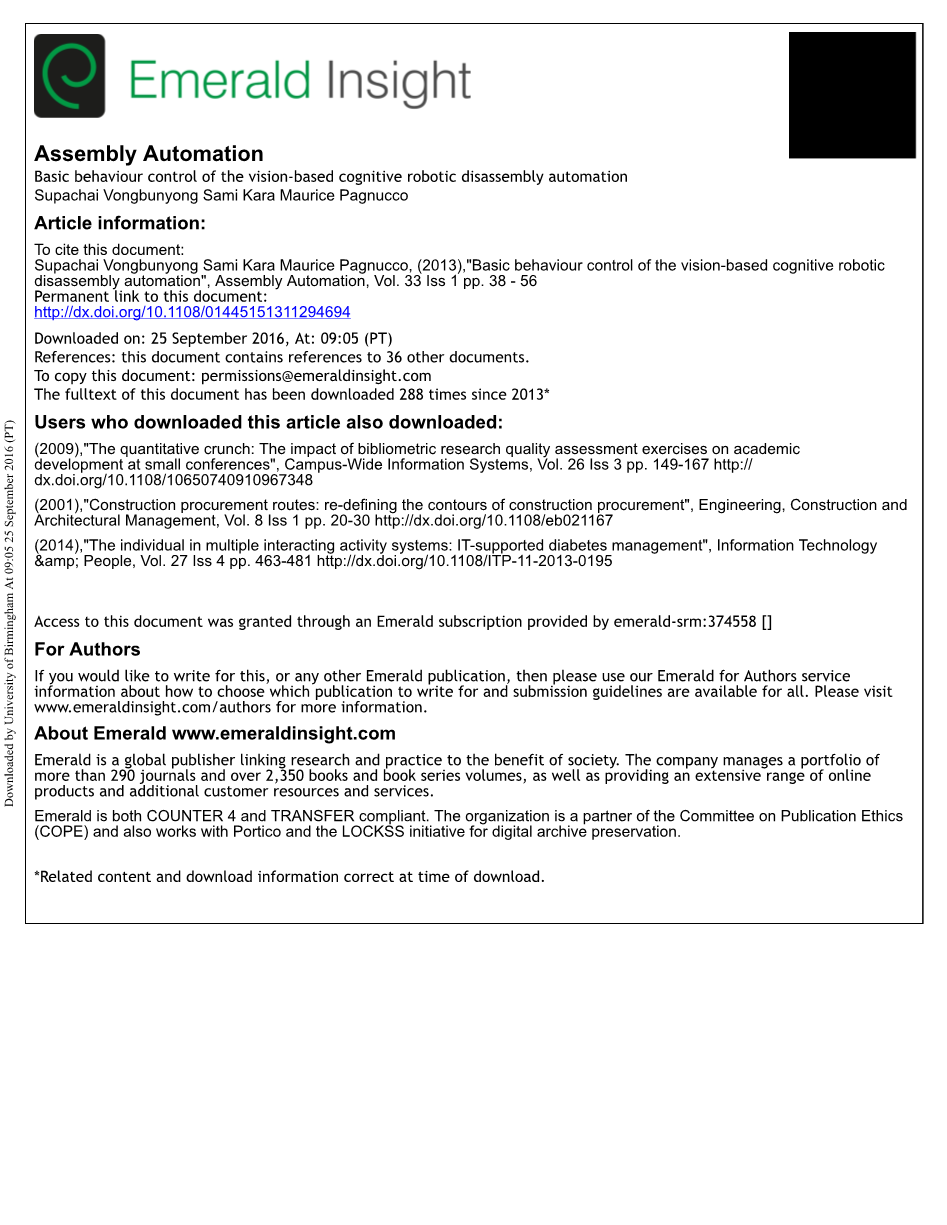 基于视觉的认知机器人拆卸自动化的基本行为控制外文翻译资料
