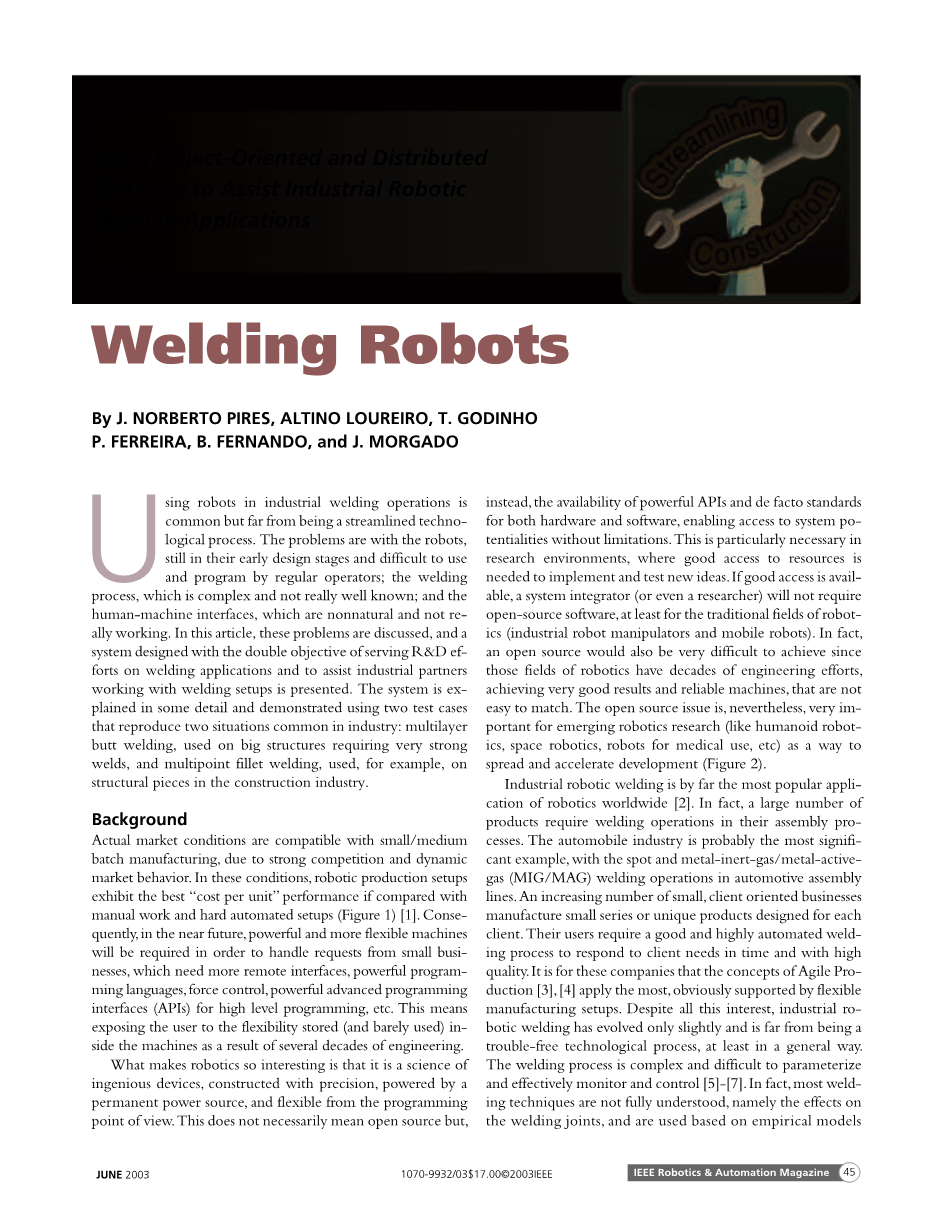 焊接机器人外文翻译资料 2021-11-07 22:41:40 英语原文共 11 页 英语原文共 16 页 原文和译文剩余内容已隐藏,您需要先支付 30元 才能查看原文和译文全部内容!立即支付 发小红书推广免费获取该资料资格。点击链接进入获取推广文案即可: Ai一键组稿 | 降AI率 | 降重复率 | 论文一键排版 PREVIOUS NEXT 您可能感兴趣的文章 带有Mini-LED背光的高动态范围液晶显示器外文翻译资料 基于局部直方图均衡的分层曝光无伪影高动态范围成像外文翻译资料 深入了解卷积外文翻译资料 基于局部和全局强度信息的主动轮廓模型用于医学图像分割外文翻译资料 采用叠加场效应管结构的毫米波功率放大器的分析与设计外文翻译资料 用于宽带包络跟踪的动态堆叠控制CMOS射频功率放大器外文翻译资料 文本无关说话人识别综述:从特征到超向量外文翻译资料 用SIMULINK启动外文翻译资料 AlGaN/GaN HEMT中电子迁移率与欧姆接触宽度关系的研究外文翻译资料 基于物联网的实时二氧化碳监测云技术外文翻译资料