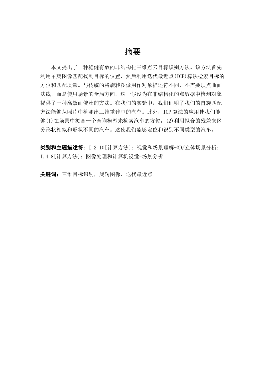 单自旋图像ICP匹配三位目标识别的研究外文翻译资料 2021-11-07 22:42:54 英语原文共 6 页 英语原文共 12 页 原文和译文剩余内容已隐藏,您需要先支付 30元 才能查看原文和译文全部内容!立即支付 发小红书推广免费获取该资料资格。点击链接进入获取推广文案即可: Ai一键组稿 | 降AI率 | 降重复率 | 论文一键排版 PREVIOUS NEXT 您可能感兴趣的文章 带有Mini-LED背光的高动态范围液晶显示器外文翻译资料 基于局部直方图均衡的分层曝光无伪影高动态范围成像外文翻译资料 深入了解卷积外文翻译资料 基于局部和全局强度信息的主动轮廓模型用于医学图像分割外文翻译资料 采用叠加场效应管结构的毫米波功率放大器的分析与设计外文翻译资料 用于宽带包络跟踪的动态堆叠控制CMOS射频功率放大器外文翻译资料 文本无关说话人识别综述:从特征到超向量外文翻译资料 用SIMULINK启动外文翻译资料 AlGaN/GaN HEMT中电子迁移率与欧姆接触宽度关系的研究外文翻译资料 基于物联网的实时二氧化碳监测云技术外文翻译资料