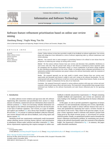 关键词: 在线软件评论特征提取主题模型 功能细化发布计划