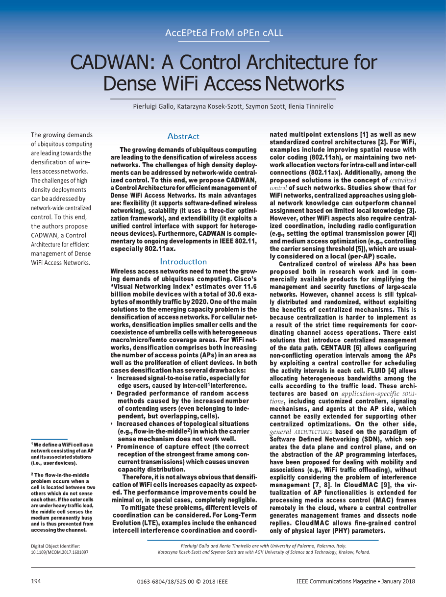 作者提出了CADWAN,一种用于高效管理密集wifi接入网络的控制体系结构。