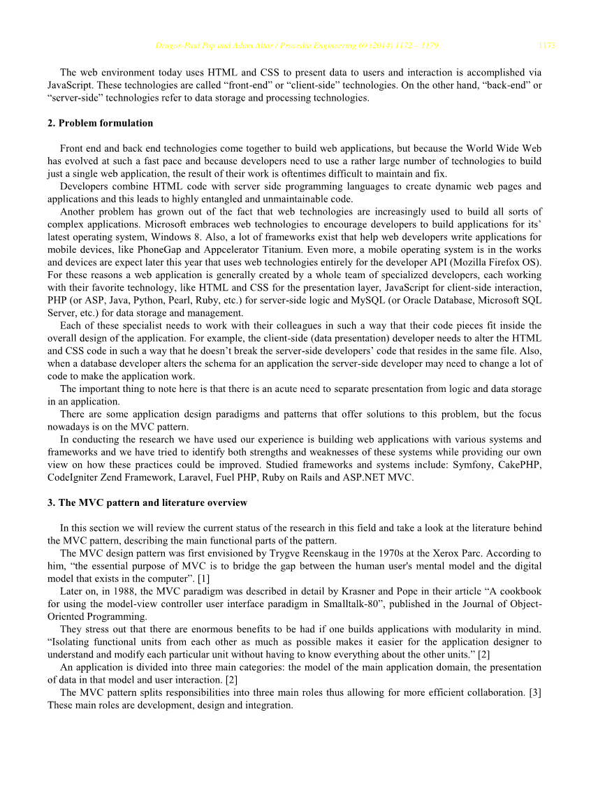 在开展研究时,我们使用的经验是建立具有各种系统和框架的网络应用程序,我们试图找出这些系统的优点和缺点,同时提供我们自己的观点,以便如何改进这些做法。 研究过的框架和系统包括:Symfony,CakePHP,CodeIgniter Zend Framework,Laravel,Fuel PHP,Ruby on Rails和ASP.NET MVC。