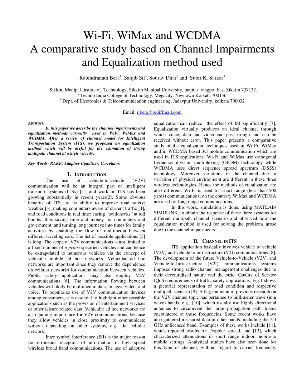 Wi-Fi, WiMax 和 WCDMA三种无线网络的信道衰减和均衡方法应用比较研究