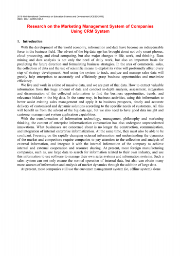 基于CRM系统的企业营销管理系统研究外文翻译资料 2021-11-18 22:03:50 英语原文共 8 页 英语原文共 6 页 原文和译文剩余内容已隐藏,您需要先支付 30元 才能查看原文和译文全部内容!立即支付 发小红书推广免费获取该资料资格。点击链接进入获取推广文案即可: Ai一键组稿 | 降AI率 | 降重复率 | 论文一键排版 PREVIOUS NEXT 您可能感兴趣的文章 带有Mini-LED背光的高动态范围液晶显示器外文翻译资料 基于局部直方图均衡的分层曝光无伪影高动态范围成像外文翻译资料 深入了解卷积外文翻译资料 基于局部和全局强度信息的主动轮廓模型用于医学图像分割外文翻译资料 采用叠加场效应管结构的毫米波功率放大器的分析与设计外文翻译资料 用于宽带包络跟踪的动态堆叠控制CMOS射频功率放大器外文翻译资料 文本无关说话人识别综述:从特征到超向量外文翻译资料 用SIMULINK启动外文翻译资料 AlGaN/GaN HEMT中电子迁移率与欧姆接触宽度关系的研究外文翻译资料 基于物联网的实时二氧化碳监测云技术外文翻译资料