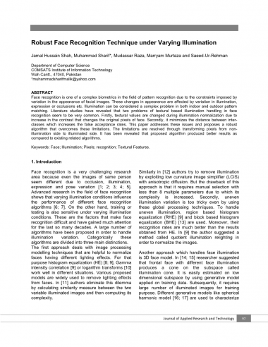 人脸识别是模式识别领域中一种复杂的生物特征识别技术,它受到人脸图像外观变化的限制。这些外观变化受到光照、表情或遮挡等变化的影响。照明可以被认为是室内和室外模式匹配中的一个复杂问题。文献研究表明,人脸识别中基于纹理的光照处理的两个问题似乎非常普遍。首先,在光照归一化过程中,由于对比度的增加,纹理值发生变化,从而改变了人脸的原始像素。其次,它最小化了类别间的距离,这增加了错误接受率。本文针对这些问题,提出了一种克服这些限制的鲁棒算法。这些限制通过将像素从非照明侧转换到照明侧来解决。结果表明,与现有的相关算法相比,该算法产生了更好的结果。