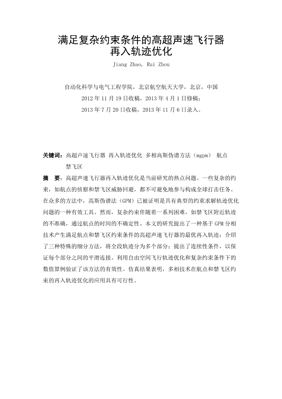高超音速目标的运动轨迹模拟算法与实现外文翻译资料