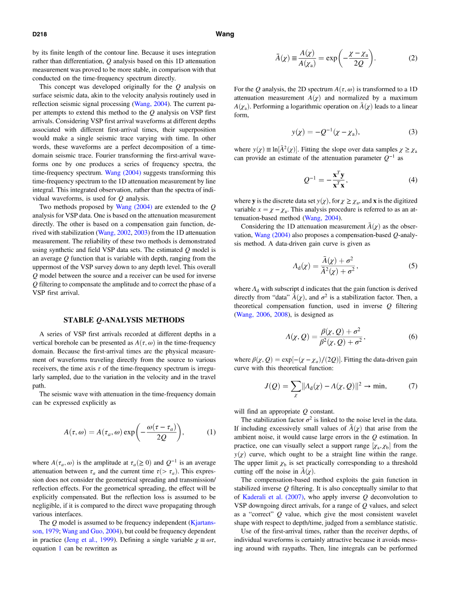 Q模型被假定为频率无关的(Kjartans-son, 1979; Wang and Guo, 2004),但可能是频率依赖的。在实践中(Jeng等人,1999)。定义一个单变量A(X)omega;(t),等式1可以重写为
