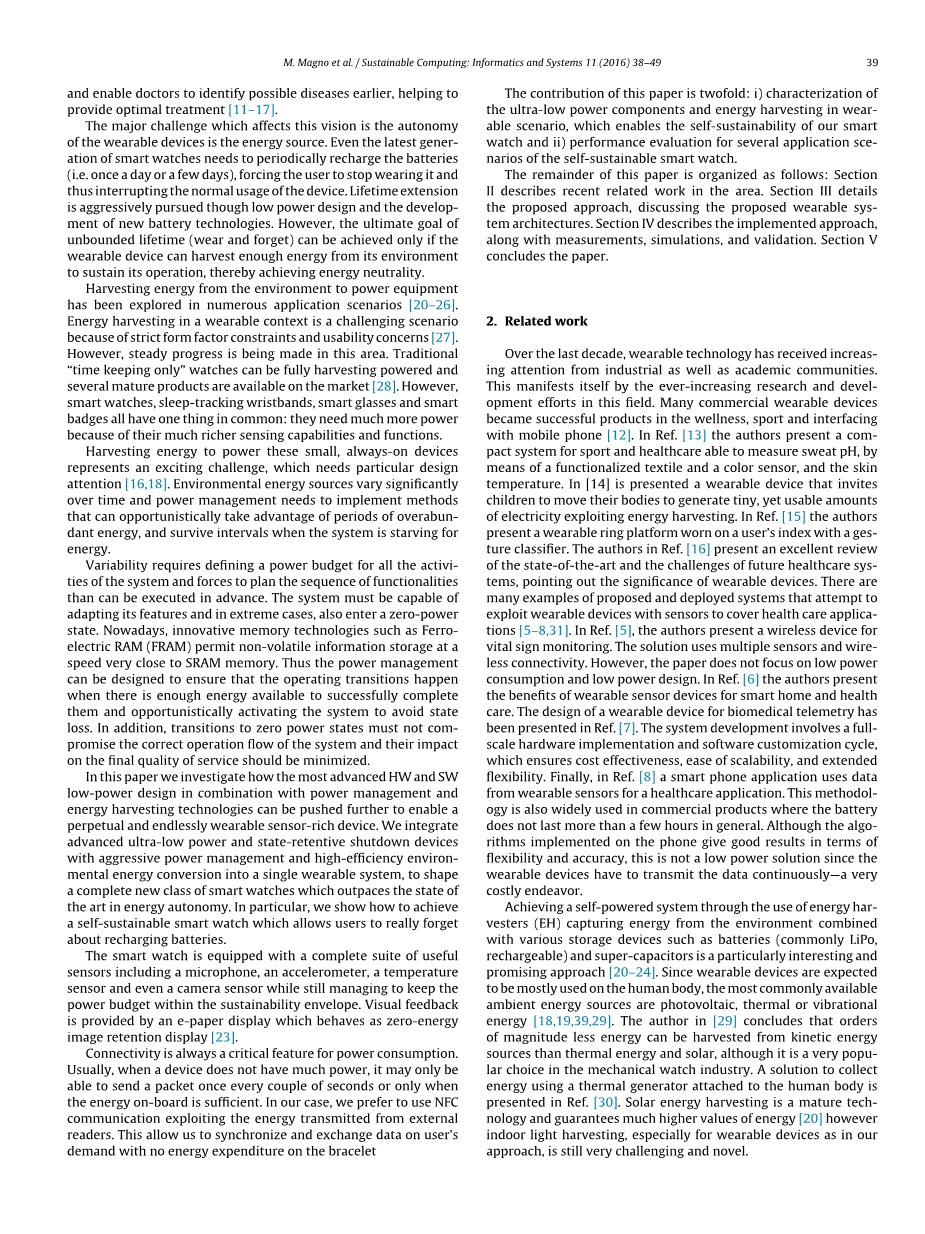 在许多应用场景中,从环境中获取能量,在可穿戴环境中获取能量是一项挑战,因为严格的形式因素限制和可用性conc,在这方面正在稳步取得进展。T“时间仅限”手表可以充分收获pow若干成熟产品在市场上可用[28]。