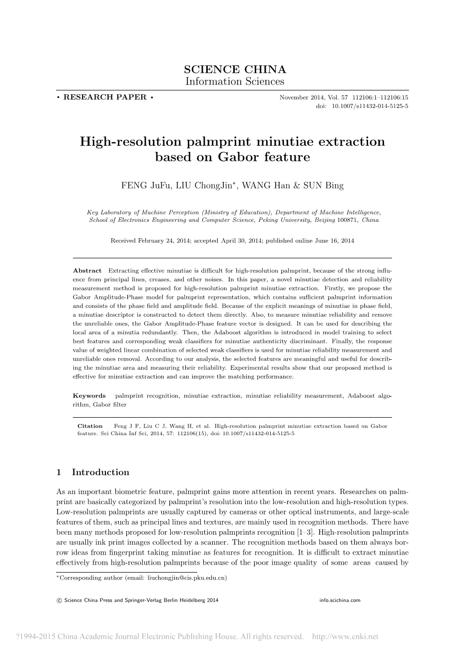 关键词:掌纹识别,细节提取,细节可靠性测量,Adaboost算法,Gabor滤波器