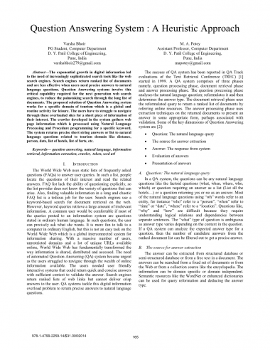 摘要 - 数字信息的指数增长导致需要越来越复杂的搜索工具,如网络搜索引擎。当用户需要对自然语言问题的精确答案时,搜索引擎返回排序的文档列表并且效率较低。问题回答系统涉及下一代网络搜索引擎所需的这一关键功能,以减少通过长文档列表的艰苦搜索。提出的问答系统解决方案适用于特定的旅游领域,这是一个全球性的日常休闲活动。用户必须努力浏览这些重载网站以获取他们感兴趣的一小段信息。系统中开发的爬虫收集网页信息,该信息使用自然语言处理和针对特定关键字的过程编程进行处理。系统返回精确的短字符串答案或列表与旅游领域相关的自然语言问题,如距离,人,日期,酒店列表,堡垒列表等。