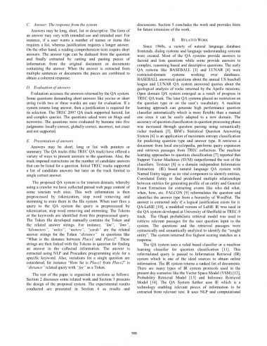 使用500份文件评估了拟议的系统。这些文档文件是通过捕获上述旅游网站的网页信息而创建的。该系统提供与旅游领域相关的自然语言问题的短字符串答案或列表。