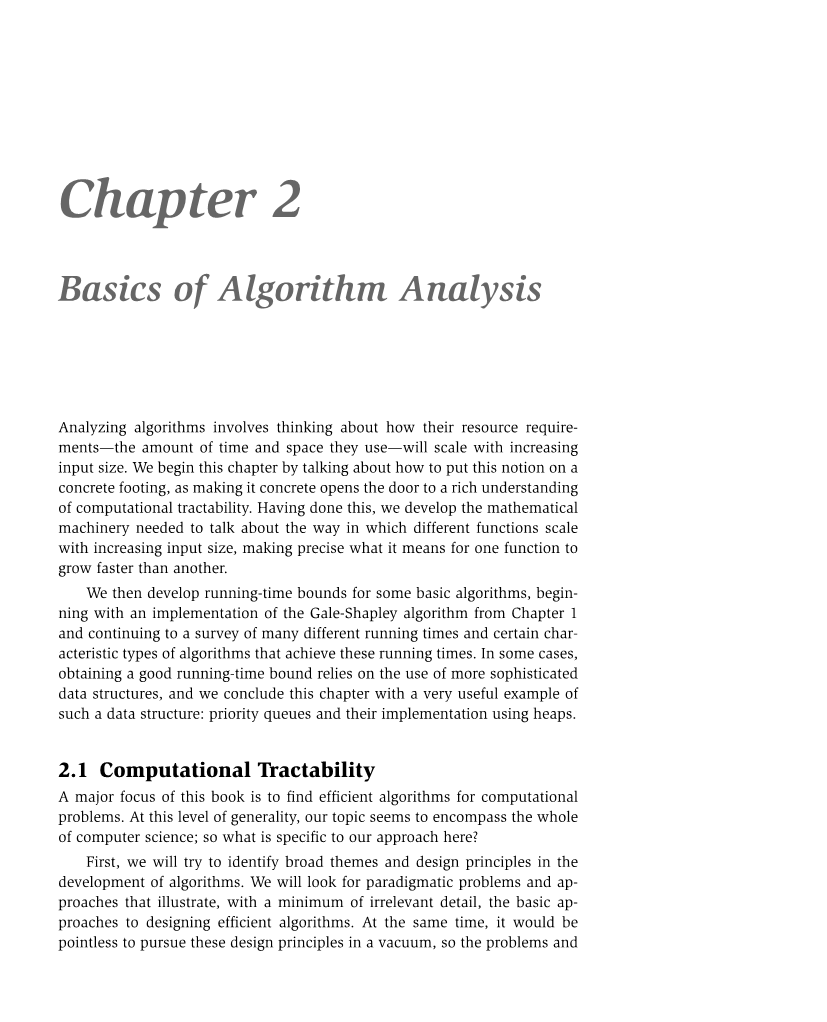 分析算法涉与如何思考他们的资源需要:对时间和空间的使用量会增加使用规模和输入尺寸。我们这一章首先讨论如何把这个概念用在具体的基础,使混凝土打开大门,使人们对计算追踪能力产生充分的理解。做到这一点,我们开发的数学机械所需要讨论的输入的大小以及不同功能尺度,使一个功能比另一个功能成长更快,含义更精确。