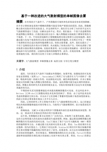 基于道路场景的图像去雾研究与实现外文翻译资料 2021-11-22 21:46:18 英语原文共 13 页 英语原文共 12 页 原文和译文剩余内容已隐藏,您需要先支付 30元 才能查看原文和译文全部内容!立即支付 发小红书推广免费获取该资料资格。点击链接进入获取推广文案即可: Ai一键组稿 | 降AI率 | 降重复率 | 论文一键排版 PREVIOUS NEXT 您可能感兴趣的文章 带有Mini-LED背光的高动态范围液晶显示器外文翻译资料 基于局部直方图均衡的分层曝光无伪影高动态范围成像外文翻译资料 深入了解卷积外文翻译资料 基于局部和全局强度信息的主动轮廓模型用于医学图像分割外文翻译资料 采用叠加场效应管结构的毫米波功率放大器的分析与设计外文翻译资料 用于宽带包络跟踪的动态堆叠控制CMOS射频功率放大器外文翻译资料 文本无关说话人识别综述:从特征到超向量外文翻译资料 用SIMULINK启动外文翻译资料 AlGaN/GaN HEMT中电子迁移率与欧姆接触宽度关系的研究外文翻译资料 基于物联网的实时二氧化碳监测云技术外文翻译资料