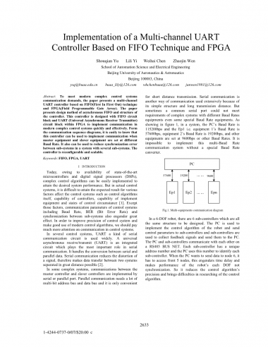 为了满足现代复杂控制系统的通信需求,本论文提出了一种基于FIFO(先进先出)技术和FPGA(现场可编程门阵列)的多通道UART控制器。论文介绍了异步FIFO的设计方法和控制器的结构。该控制器采用FPGA中的FIFO电路块和UART(通用异步接收发送器)电路块设计,实现了现代复杂控制系统的快速有效通信。从通信顺序图中可以很容易地看出,当主设备和次属设备的波特率不同时,该控制器可以用来实现通信。它还可以用于减少具有多个子系统的系统中的子系统之间的同步误差。控制器是可重新配置和可扩展的。