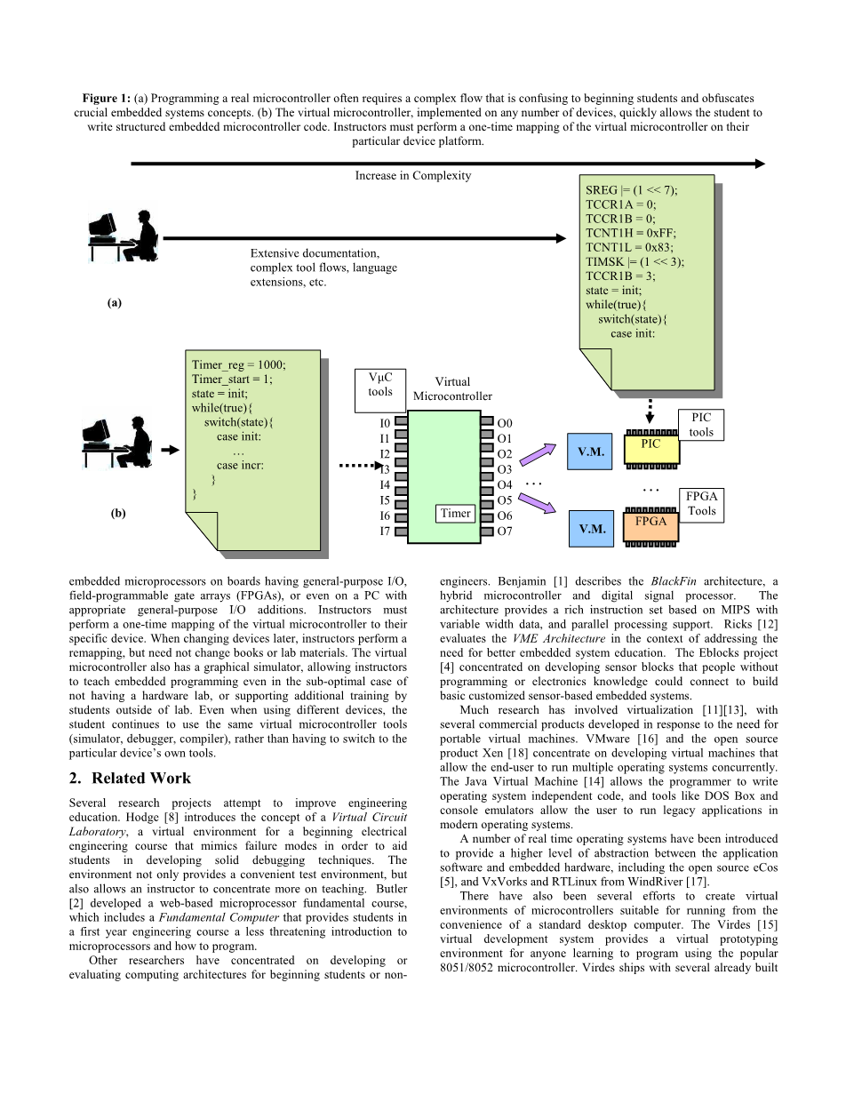 就我们所知,本文所描述的工作是第一个描述虚拟微控制器的,它可以在现有平台上物理实现,同时也支持程序员访问低级但纯粹,简洁的微控制器资源。