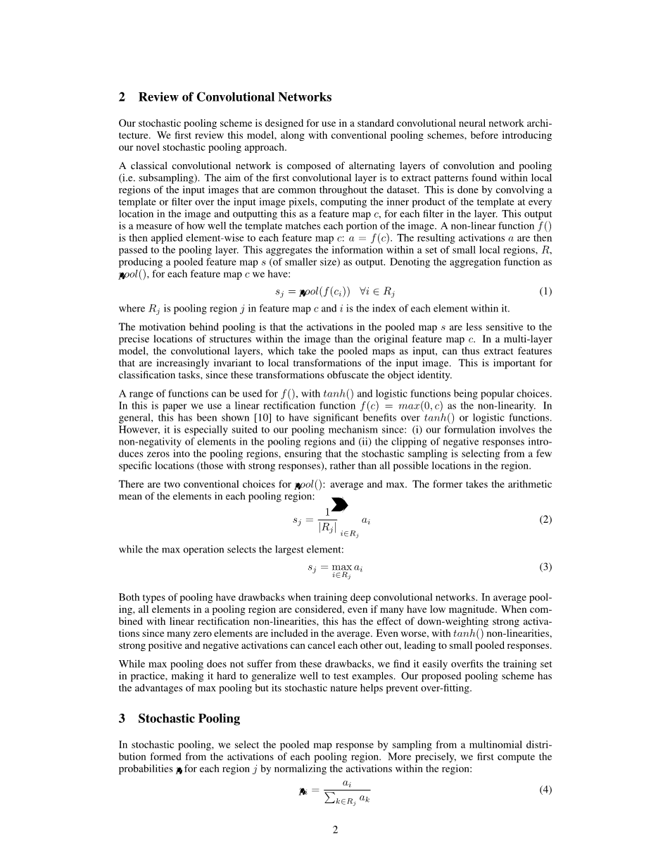 在测试时使用随机池会在网络的预测中引入噪声,我们发现这种预测会降低性能(参见第4.7节)。 相反,我们使用概率形式的平均。 在此,每个区域的激活通过概率pi加权(参见公式4)并相加: