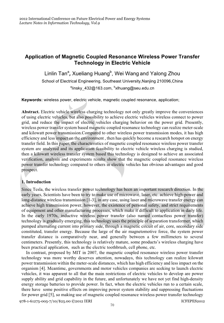 关键词:无线能量,电动汽车,磁耦合谐振,应用;