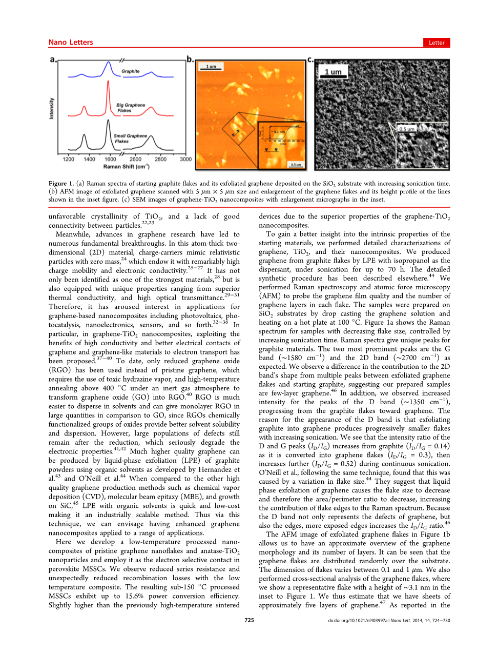 为了更好地了解原材料的固有特性,我们对石墨烯, TiO2及其纳米复合材料进行了详细的表征。在超声处理下长达70小时,我们用LPE用异丙醇作为分散剂从石墨薄片中制得石墨烯。详细的合成程序已在其他地方进行了描述。我们执行了拉曼光谱和原子力显微镜