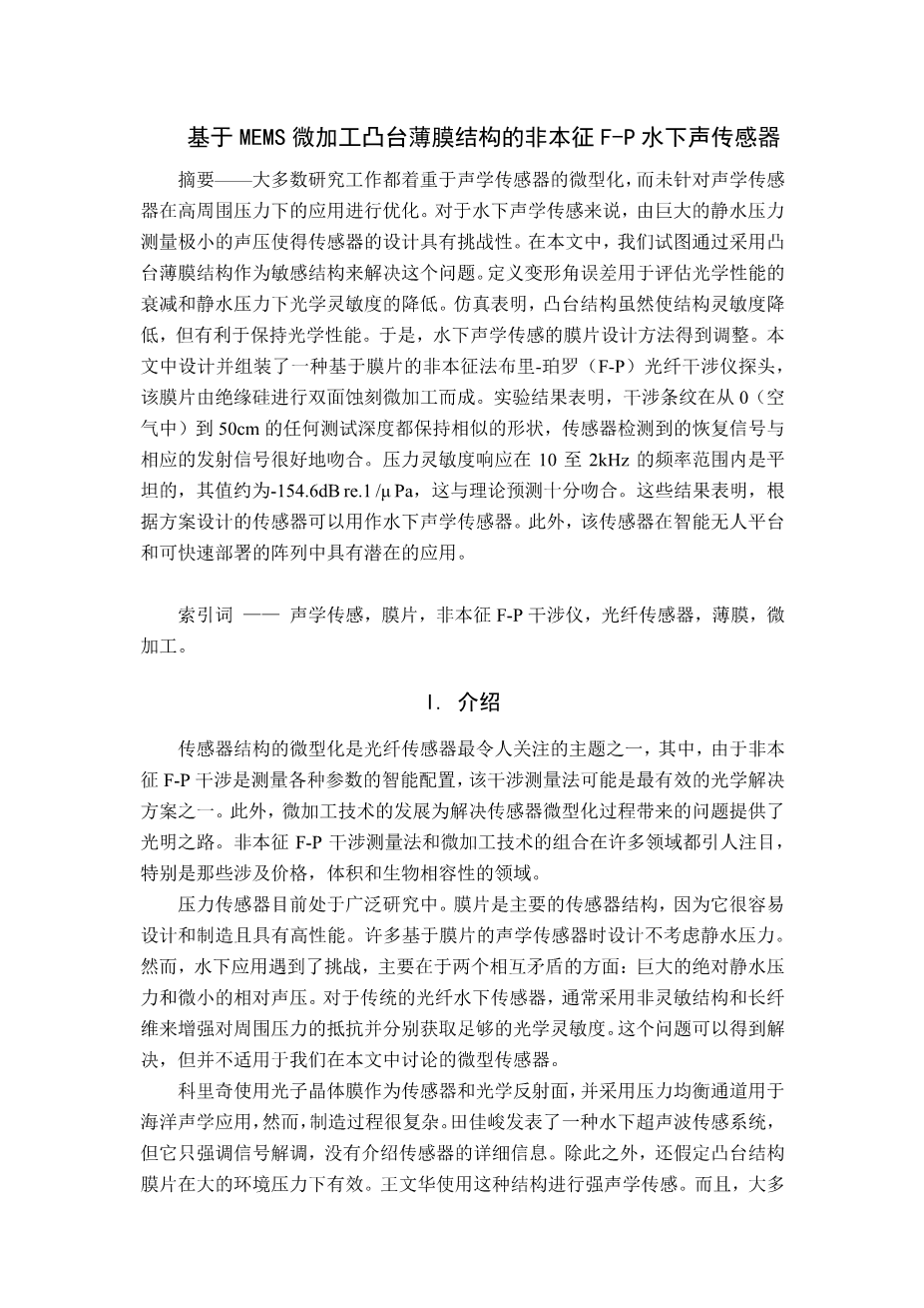 不同材料薄膜结构的压致形变分析与研究外文翻译资料 2021-12-26 17:00:38 英语原文共 10 页 英语原文共 6 页资料编号:[3516] 原文和译文剩余内容已隐藏,您需要先支付 30元 才能查看原文和译文全部内容!立即支付 发小红书推广免费获取该资料资格。点击链接进入获取推广文案即可: Ai一键组稿 | 降AI率 | 降重复率 | 论文一键排版 PREVIOUS NEXT 您可能感兴趣的文章 基于六棱柱-NaYF4:Er3 ,Yb3 上转换层的近红外光吸收钙钛矿太阳能电池外文翻译资料 智能家居物联网综述:挑战与挑战解决方案外文翻译资料 基于稀疏傅里叶变换的信号压缩算法研究外文翻译资料 基于深度卷积神经网络的图像识别分类外文翻译资料 基于ASP的图书数据库管理系统设计外文翻译资料 显对称破缺电磁辐射外文翻译资料 基于安卓平台的旅游助手程序设计外文翻译资料 双频金属贴片超高频射频识别技术标签天线外文翻译资料 5.8-GHz的圆极化双二极管整流天线和整流阵列天线微波输电外文翻译资料 Si-Te二维层状纳米材料的制备及其光特性研究外文翻译资料