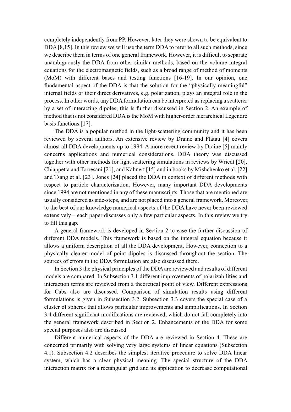 第5节回顾了DDA与其他方法的数值比较;讨论了其优缺点。第6节总结了审查工作,并讨论了DDA未来的发展。