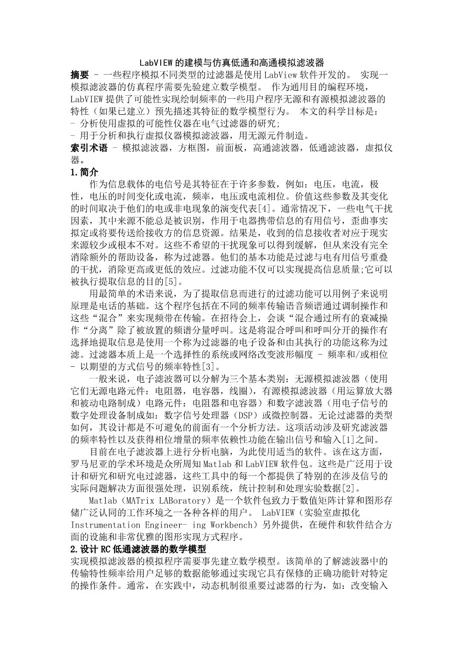 基于LabVIEW的数字滤波器设计外文翻译资料