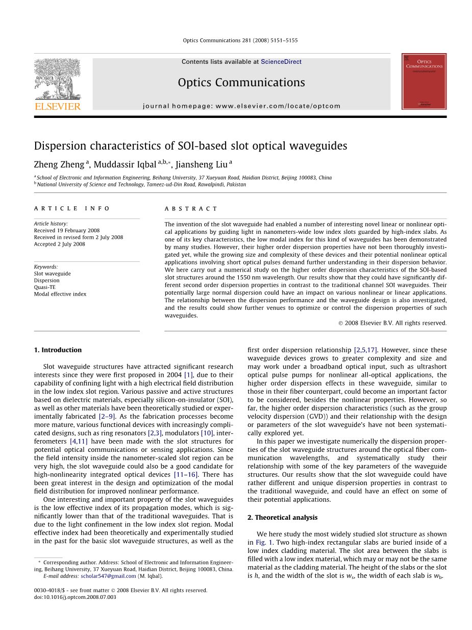 在本文中,我们通过数值研究了光纤通信波长周围的缝隙波导结构的色散特性,并系统地研究了它们与波导结构的一些关键参数的关系。我们的研究结果表明,与传统波导相比,时隙波导具有不同且独特的色散特性,并且可能对其一些潜在应用产生影响。