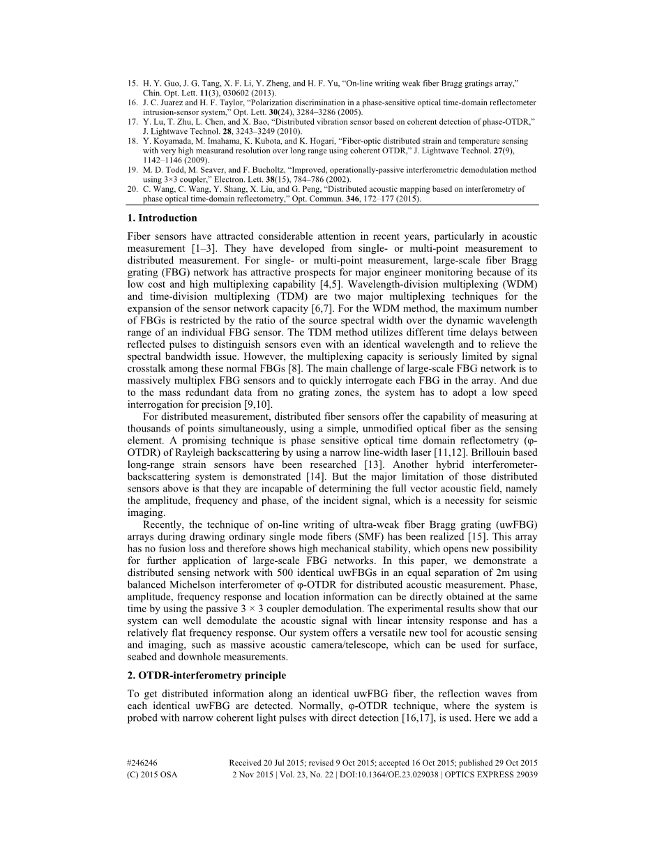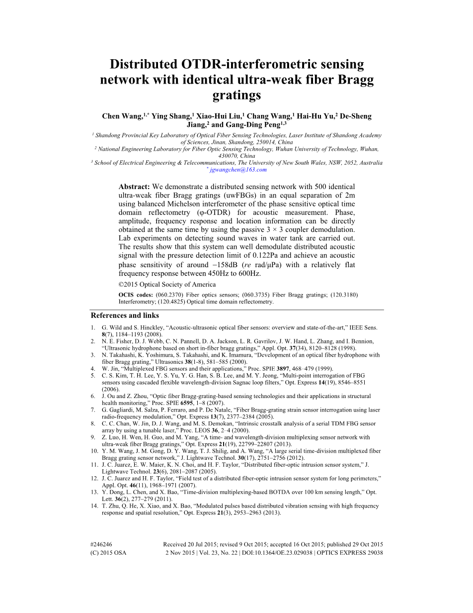 基于全同超弱光纤布拉格光栅的分布式OTDR-干涉测量传感网络外文翻译资料